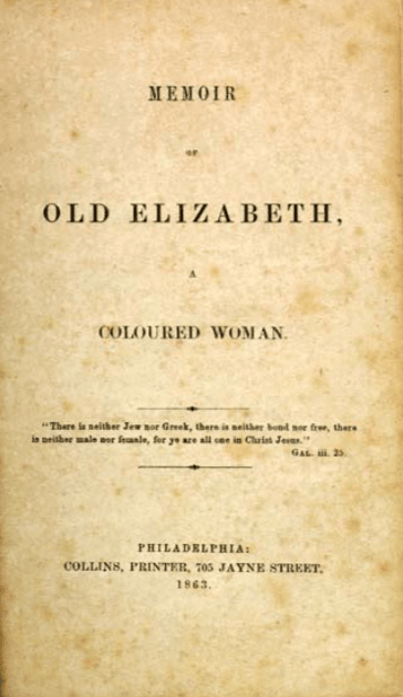 Old Elizabeth, author of the 1863 chronicle Memoir of Old Elizabeth, a Coloured Woman, was born into slavery in Maryland around 1765. Like many enslaved people, she was denied both a last name and education, yet her memoir is one of the oldest surviving slave narratives by a woman from the antebellum period.